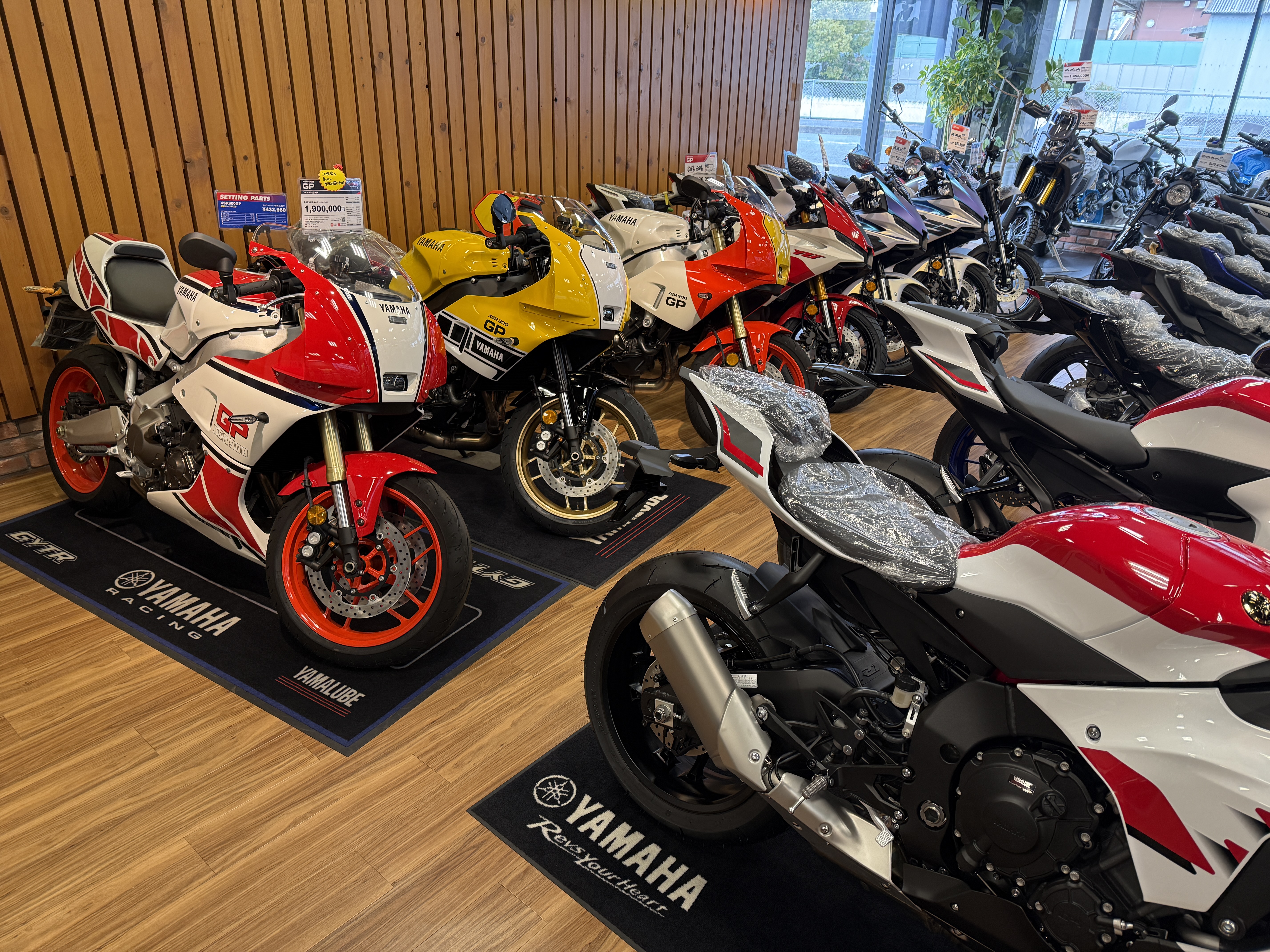 歴代レーサーのカラーが一同に。この時代にヤマハって変なメーカーですね。(楽しいけど)